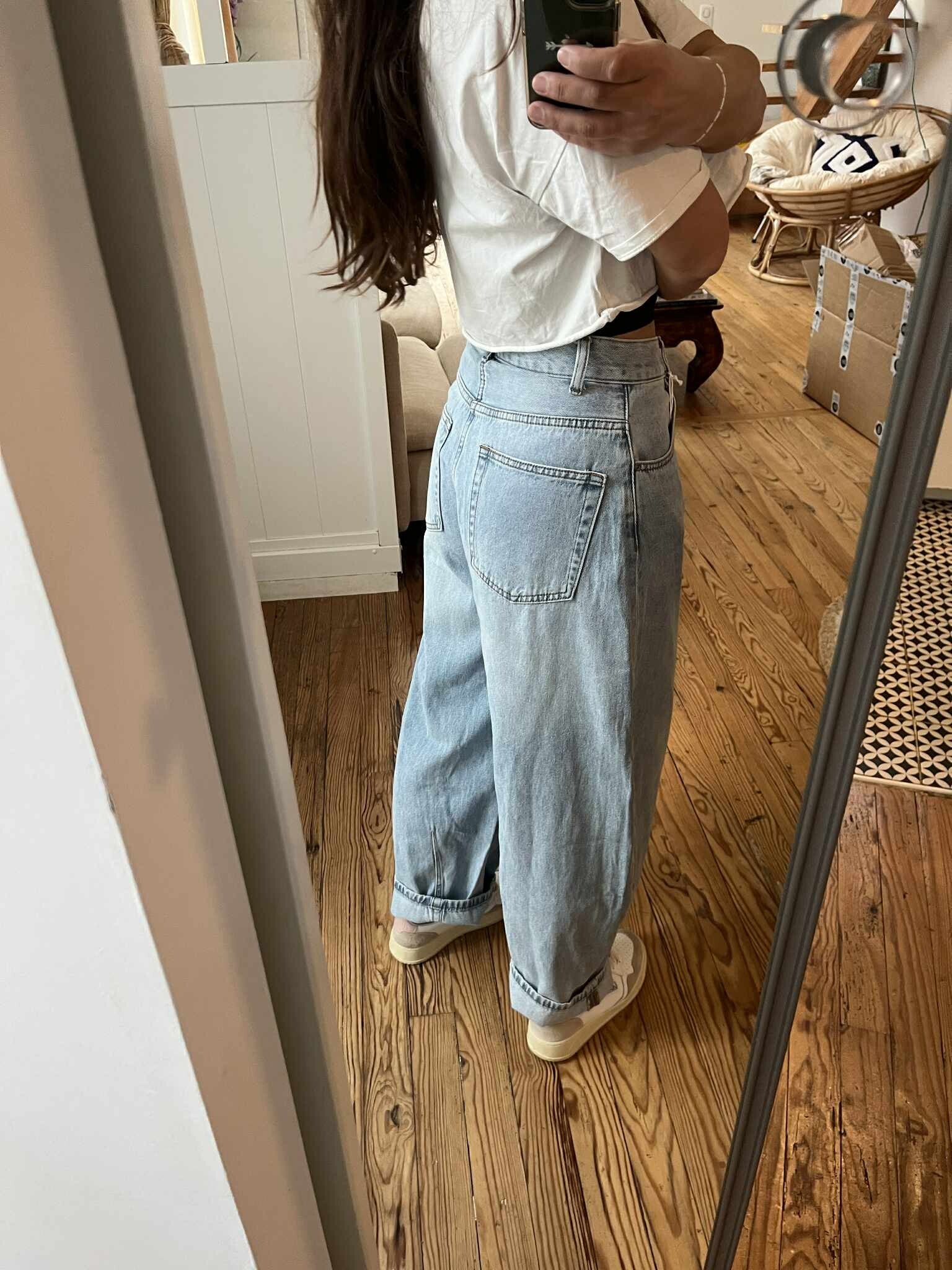 LE JEAN Barrel bleu clair est la piece parfaite pour un look casual et stylé c'est la piece du moment .